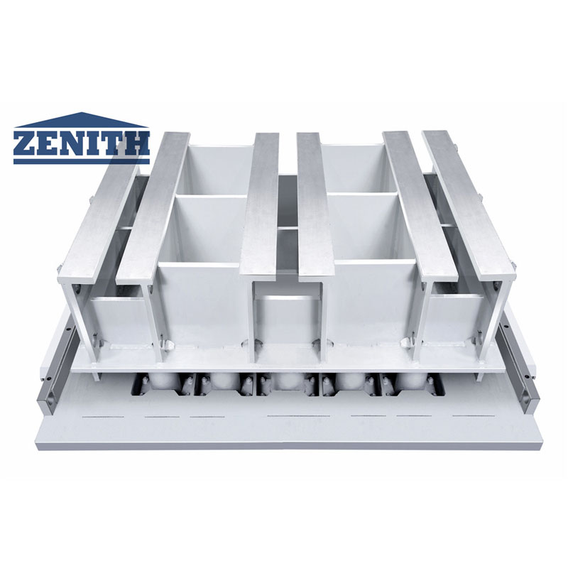 4) Satu lintasan baharu telah dibangunkan untuk Mesin Pembuat Blok Palet Tunggal Zenith 1500 yang membolehkan untuk mengeluarkan lajur secara individu dari sisi. Ciri baharu ini menjimatkan banyak masa semasa kerja penyelenggaraan dan pertukaran boleh dilakukan dengan lebih selamat dan dengan sedikit usaha. Keseluruhan geometri pemasangan ini termasuk lajur adalah sama dengan mesin sebelumnya ZENITH 1500. Adalah mungkin untuk mengubah suai lintasan baharu ini pada mesin sedia ada.